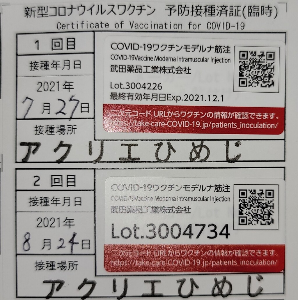 自分はどうかと思って接種済証を見てみたら、