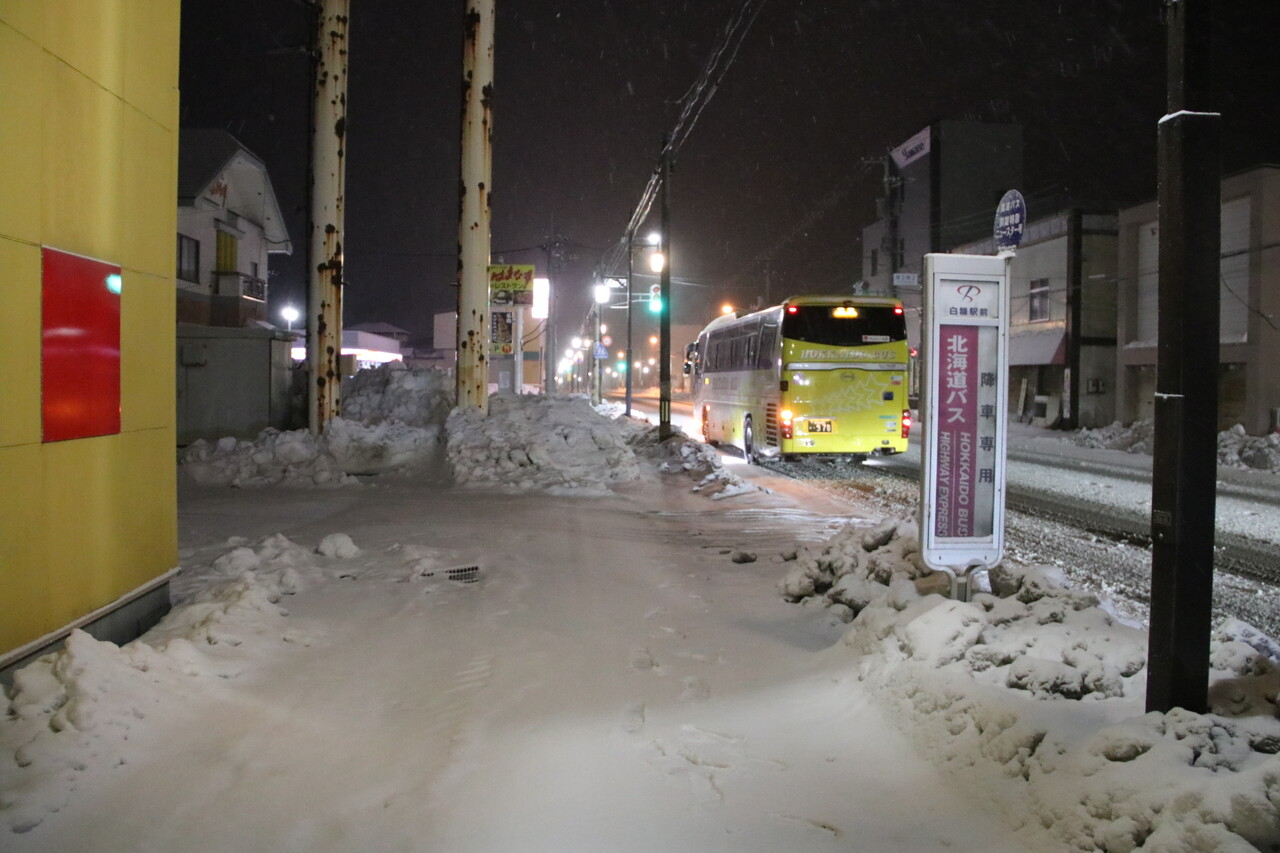 札幌駅前から夜行高速バスに乗って、