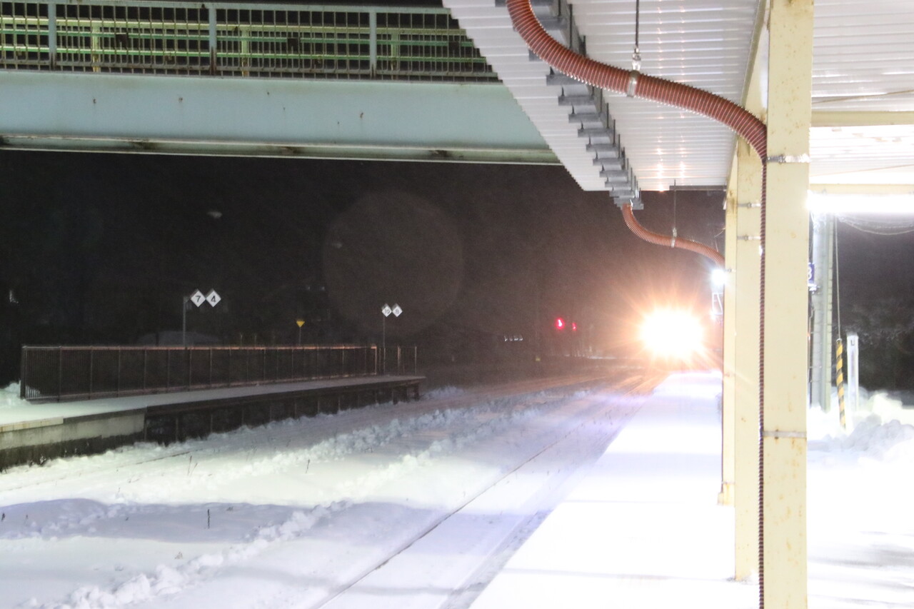 始発列車を待ってたら、急に列車が高速で通過して行った。