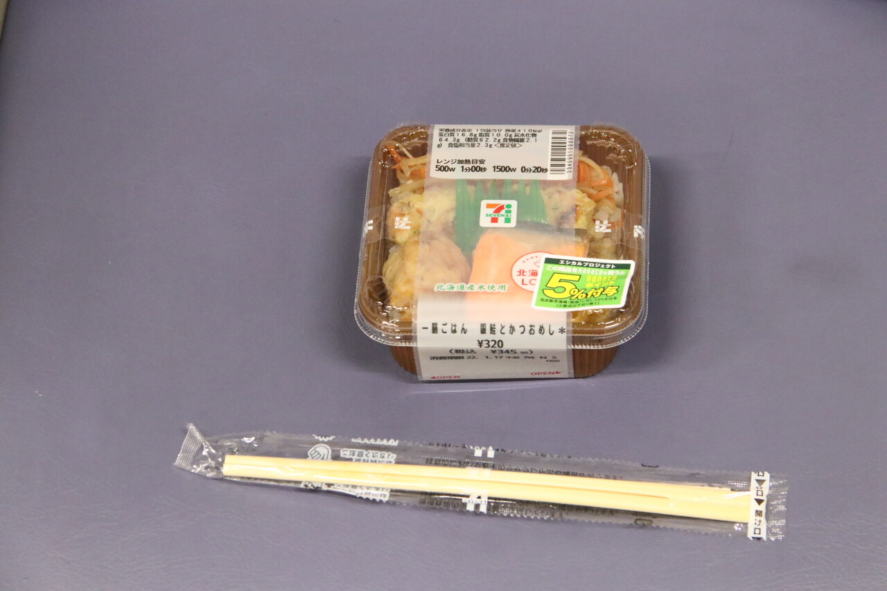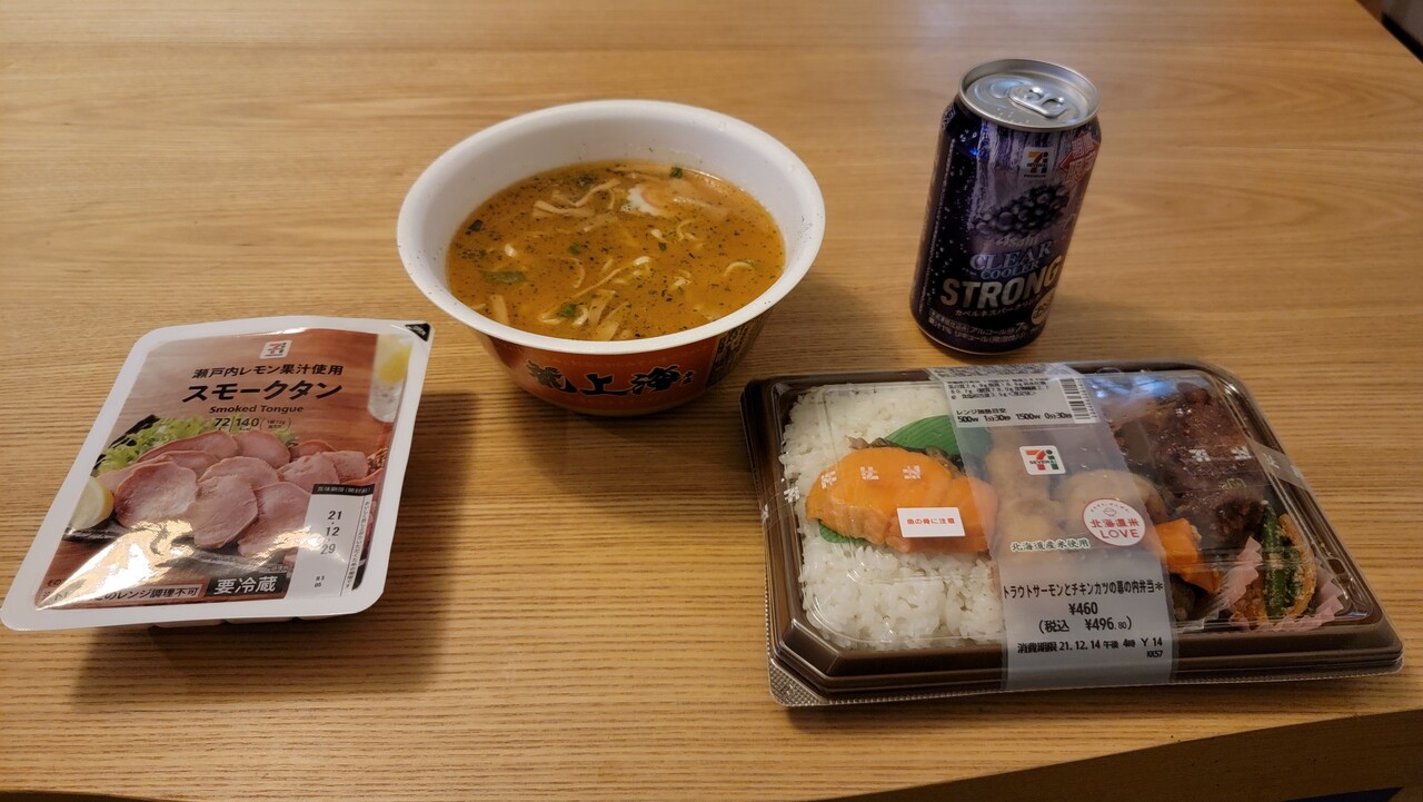 セブンイレブンで買うた朝飯を食う。