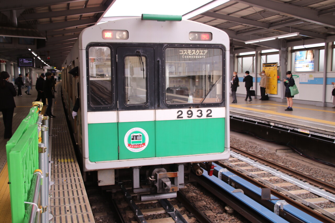 コスモスクエア駅から折り返してきたさようなら20系ヘッドマーク車