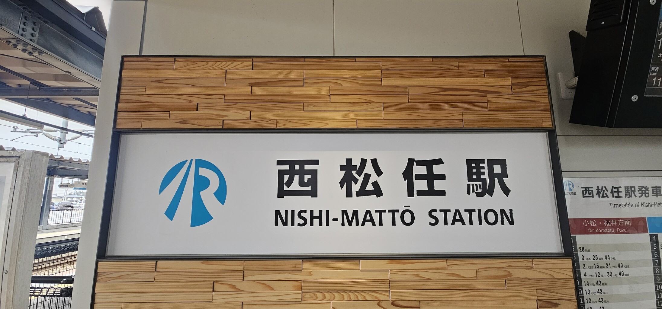 西松任駅2番線の裏の駅名標(福井寄り)