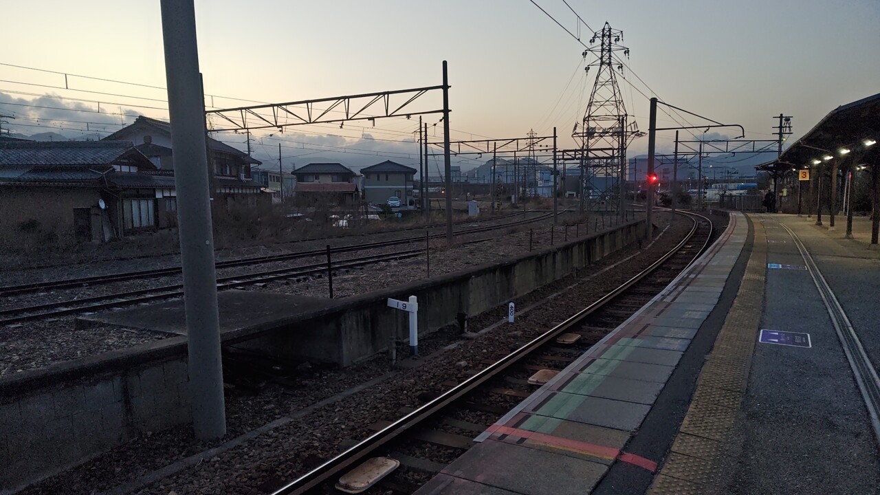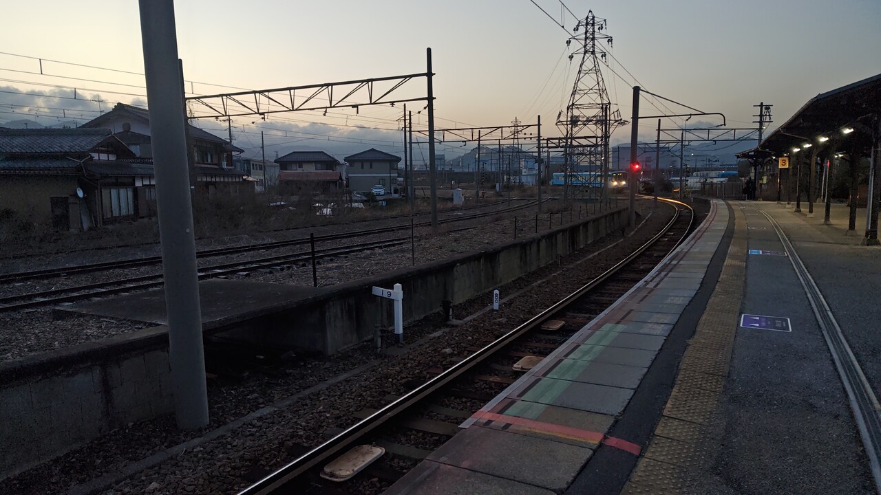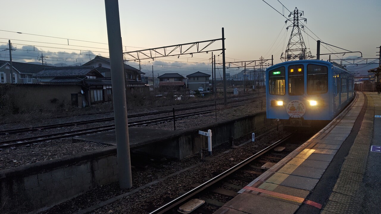 この初発電車が多賀大社前から折り返してくるのに乗る。