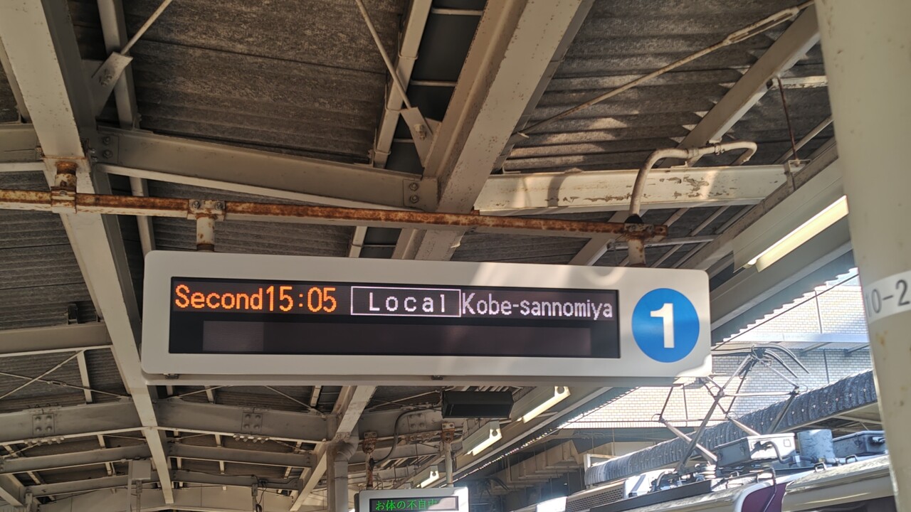 Second 15:05 Local Kobe-sannomiyaの発車標(英語)