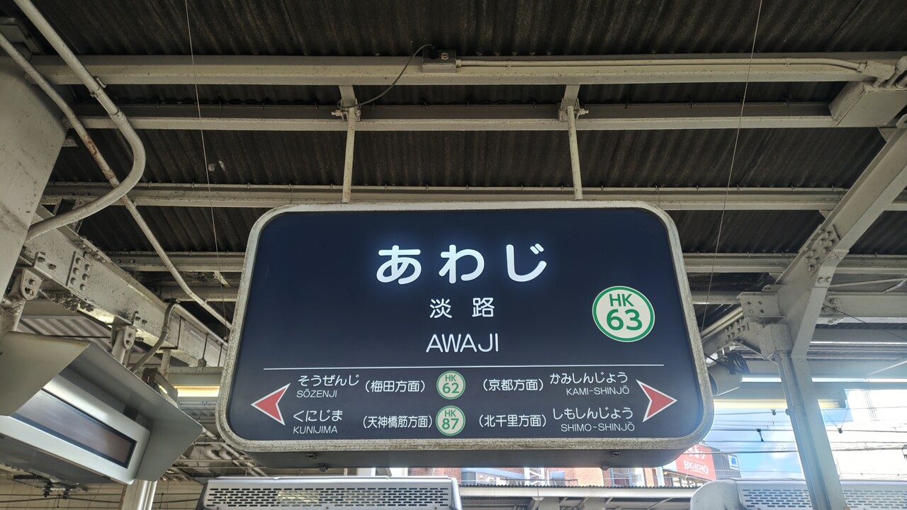 淡路駅京都線下りホームへ。