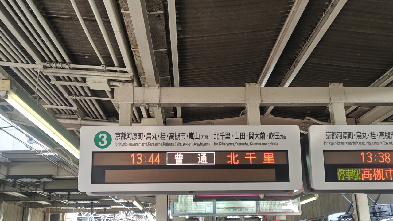 13:44 普通 北千里の発車標(日本語)