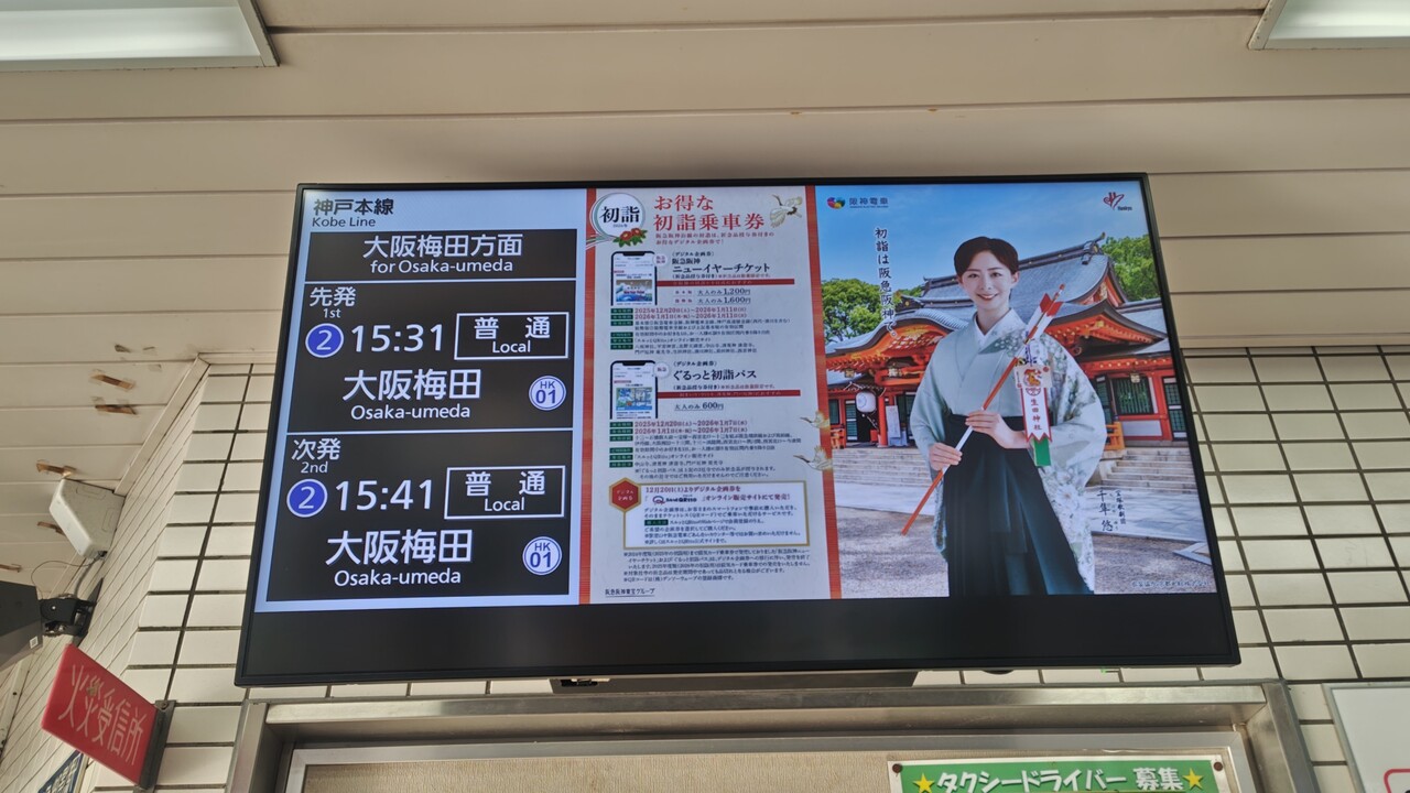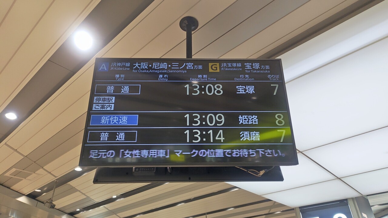 次発 15:05 普通 神戸三宮の発車標(日本語)