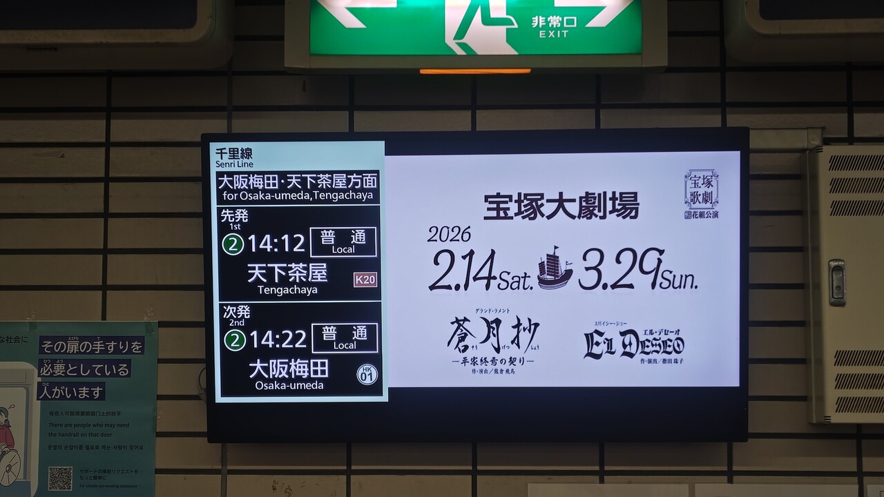 13:44 Local Kita-senriの発車標’(英語)