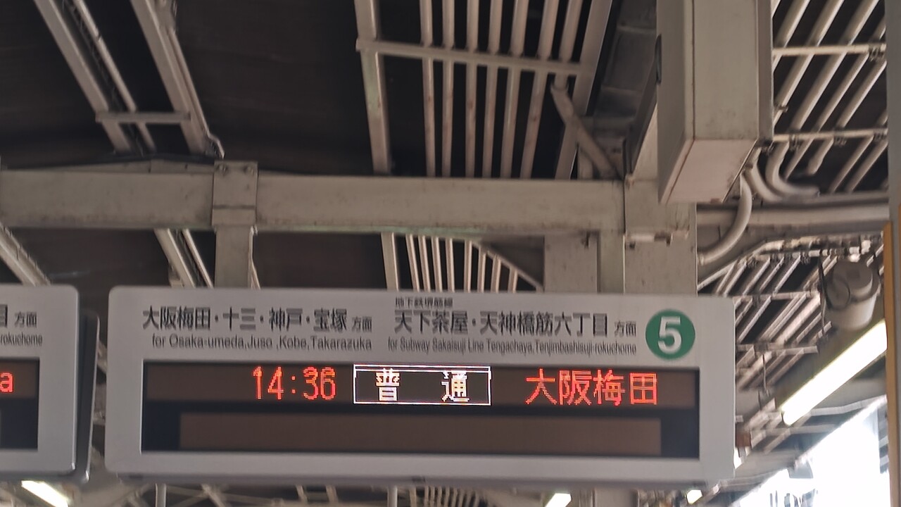 14:36 普通 大阪梅田の発車標(日本語)