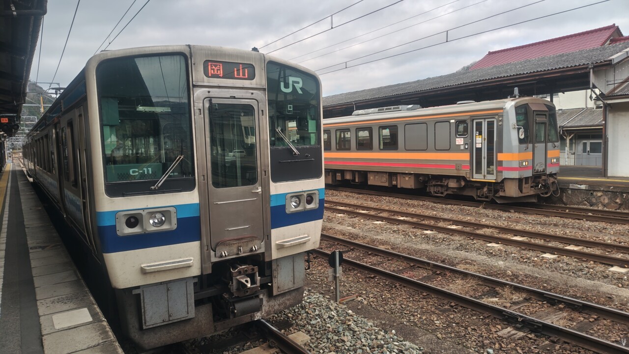 14:39 新見始発 普通岡山行き 213系2両ワンマン