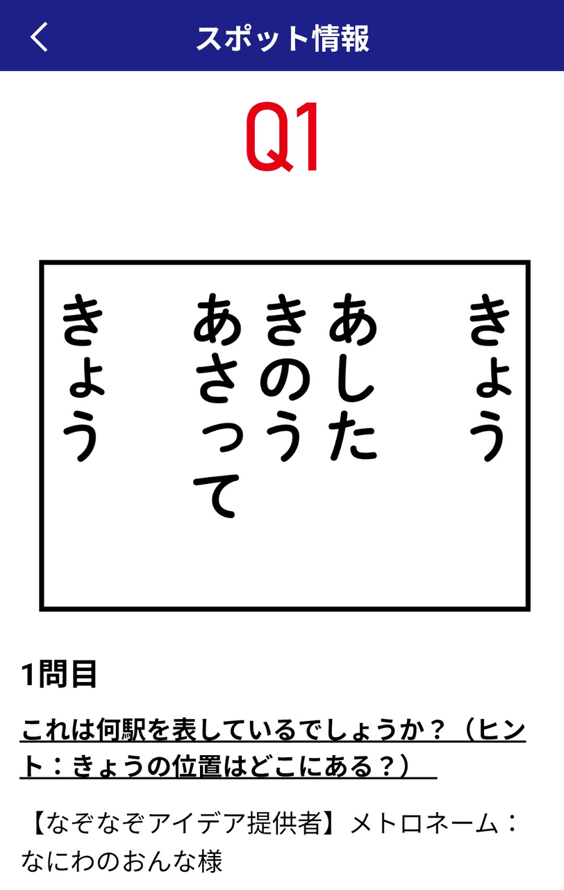 スタンプラリーは、クイズ形式になっていて、問題の答えの駅に行くと、位置情報でスタンプがGET出来る。