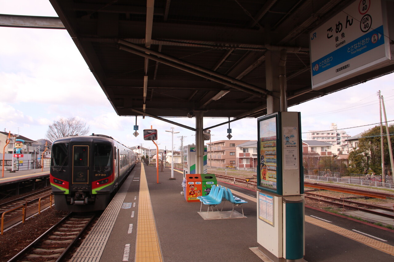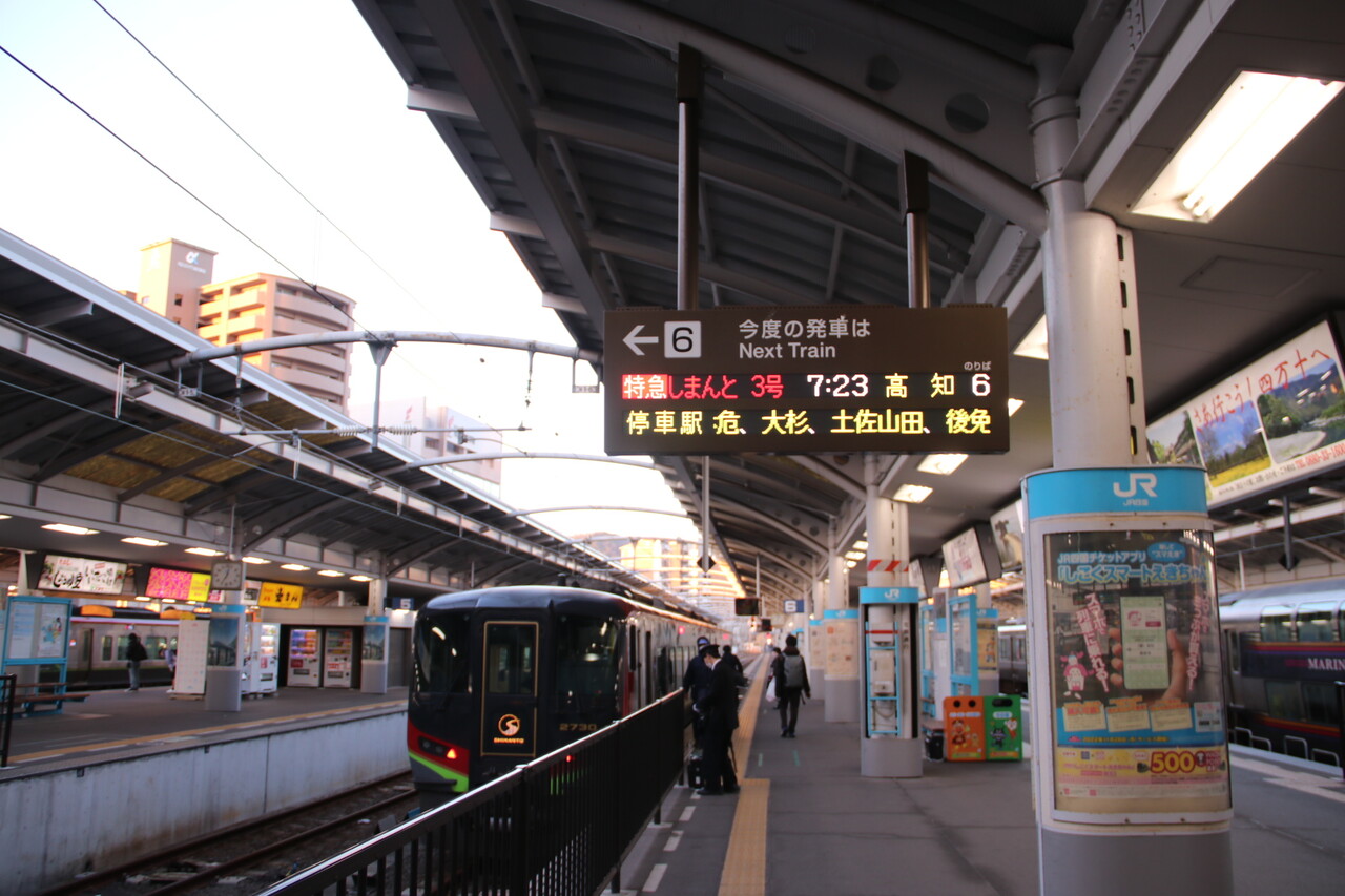 宇多津駅で、しおかぜといしづちの併結作業を撮っていたら、乗る列車が来たので撮影して、方向幕を撮っていたら、扉が閉まり乗れなかった。後続の普通列車で坂出駅をクリアしたのだった。